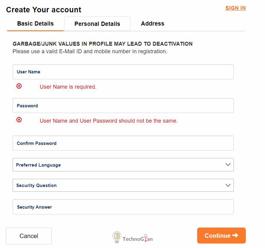 पूरा fill करने के बाद continue button पर क्लिक करे। जिसके बाद फिर न्यू tab ओपन होगा। जिसमे हमें Personal Details को fill करना होगा। जो निम्न है: